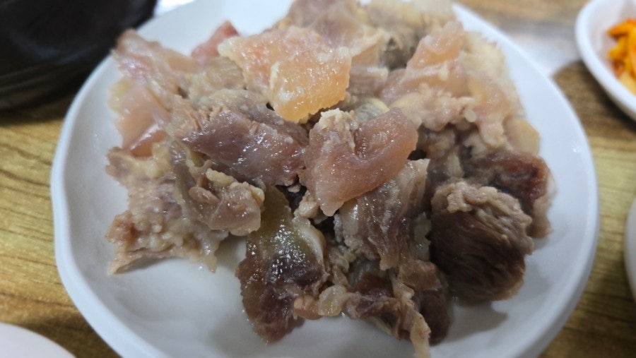진한 국물은 잡내 하나 없이 깔끔하고 구수해요. 밥을 국물에 말아 특제 간장 소스에 찍은 도가니를 올려 먹으면... 아, 진짜 이건 무조건 먹어봐야 합니다. 깍두기와 김치도 이 집의 숨은 공신이에요. 도가니탕의 기름진 맛을 싹 잡아주면서 감칠맛을 더해주거든요. 특히 저는 고추장 마늘장아찌에 푹 빠졌어요. 집에서는 절대 흉내 낼 수 없는 깊은 맛이랄까요.
